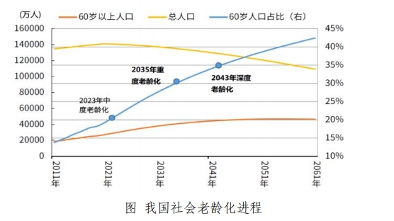 我國已于1999年步入老齡化社會(huì),且程度繼續(xù)加深。截至2023年末,60周歲以上的人口數(shù)量已經(jīng)增長(zhǎng)至29697萬人,占全部人口數(shù)量的比重為21.1%,進(jìn)入中度老齡化社會(huì)。
